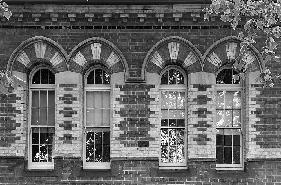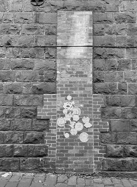 The photographs were converted to black and white, since what is important here is the form, not the colours. Quite a few could not be taken from square on and so were "straightened out" using the Perspective Crop tool in Photoshop. Otherwise they were left alone.